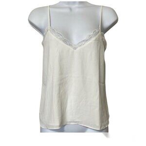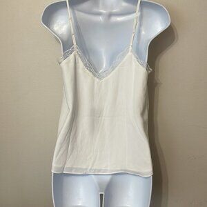 Shinestar white lace trim vneck cami