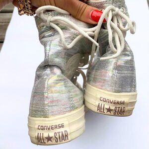 Shiny Converse Chuck Taylor High Tops – Iridescent Silver – Women’s Size 8 US