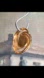 Polished gold tone metal with champagne color faux pearl cabochon, lovely iridescent quality.