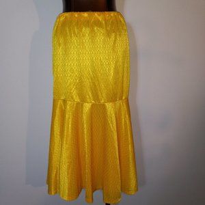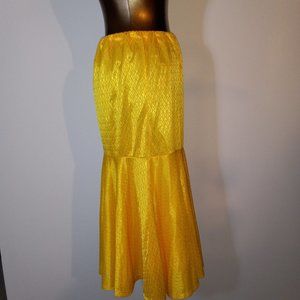 Shiny yellow ruffle tulip skirt, jersey, vintage circa late 1970s-early 1980s