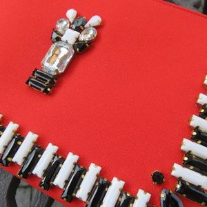 Shiraleah Rafaella Red Jewelled Zip Pouch Bag