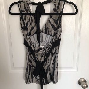 Halter style new condition beautiful shirt black and grey with gold flecks throughout size large