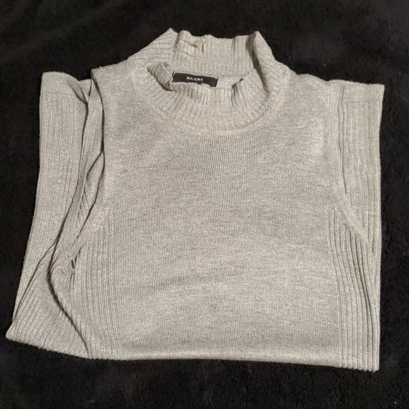 Low turtle neck. Sleeveless.