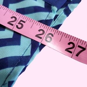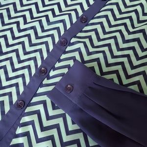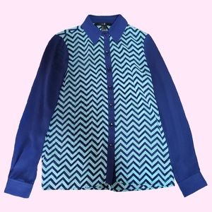 Blue and aqua blue zig-zag button up blouse from Forever21. Shirt is a little sheer so you may want to wear a tank underneath when wearing at work.