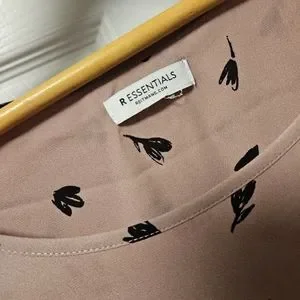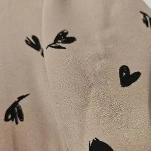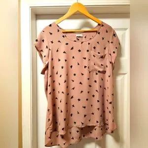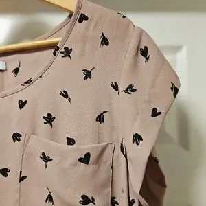 Reitmans dusty pink polyester shirt with black brush stroke hearts size XL