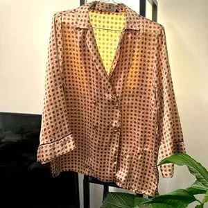 Satinish material shirt with copper buttons