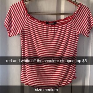 red and white off the shoulder stripe top- size m but fits lose