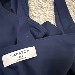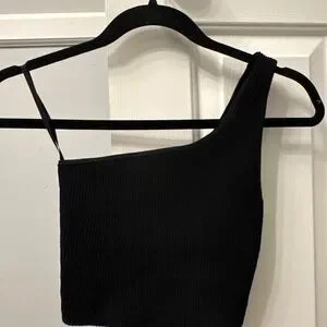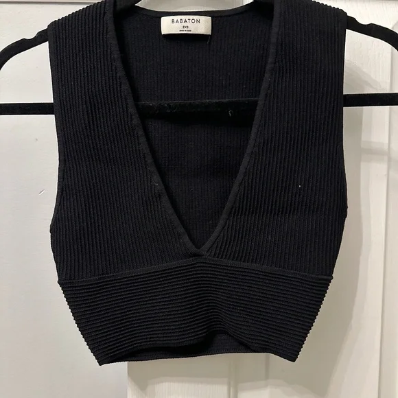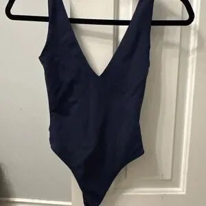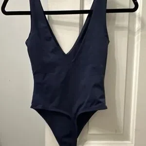 Three stretchy ribbed crop tops one V-neck bodysuit navy blue. Prices for all