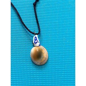 Shiva eye shell pendant wrapped with sterling silver wire (unpolished), on leather cord. Worn once.