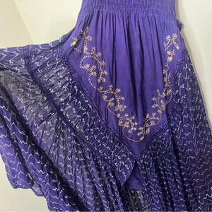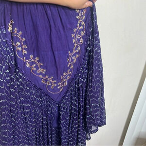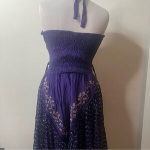I wish I had something to display the dress better. It’s so beautiful. It’s a halter top, with a stretchy back it says one size fits all. pit to pit is 16. The dress gives me Renaissance vibes. But I wore it as a costume as Anna from frozen 💞