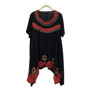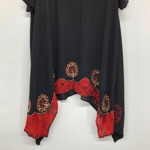 Shiva Fashions Rayon Black & Red High Low Hindi-style Tunic Blouse OS