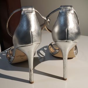 Close to new 4.5 inches party/ evening shoes. It has a little chip on the heel of the right leg as shown in the picture but in very good condition.