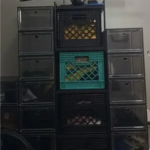 ✔Clear Shoe Boxes Stackable - Clear magnetic front door, stackable design, harder material, the shoe case provide you a more load-bearing multiple layers of shoe walls.No sliding,safe and stable. Stack easily on side and tops with pegs, you can connect them however you please.