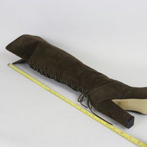 Beautiful tall boots in a stunning shade of rustic brown. With laces at the back, you can easily adjust the fit to your liking. If you prefer a lace-up style, simply switch them to the top. To maintain a sleek and seamless look, there's an inner zipper making them easy to slip on and off. New without box. Excellent