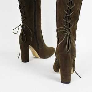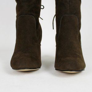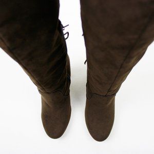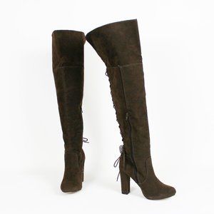 ShoeDazzle Brown Faux Suede Thigh-high Lace-up Boots