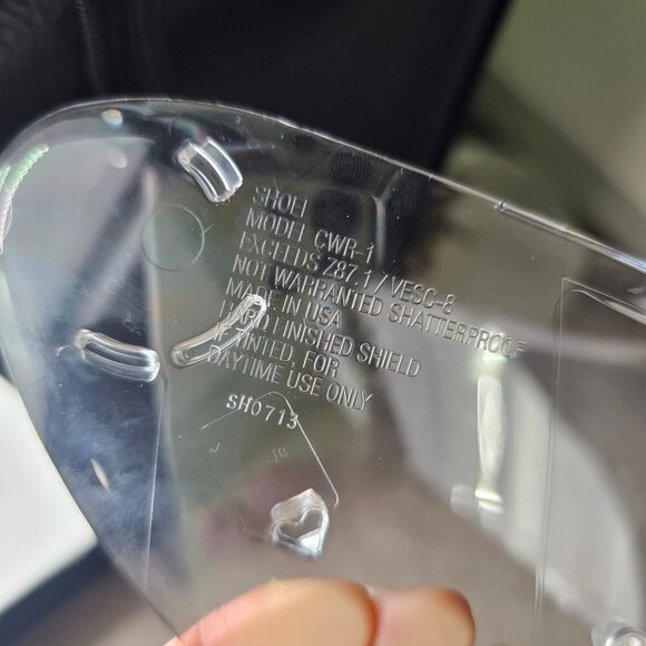 The CWR-1 Pinlock-Ready Face Shield fits Shoei RF-1200, RF-SR and X-14 Helmets and provides a vast field of vision that rivals other face shields. In addition to protecting against 99% of the sun’s damaging UV rays, the CWR-1 face shield offers a distortion-free view throughout the entire range thanks to Shoei's 3D injection-molding process. While the CWR-1 does not feature the Vortex Generators found on the CWR-F, innovative ribs on the top and bottom edge of the shield improve rigidity and eliminate the bending that may occur from wind pressure and during the opening and closing process. Finally, the improved shield locking mechanism rounds out Shoei's most advanced shield system to date.
