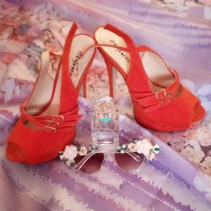 Orange strapped over heels.