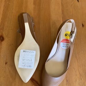 Franco Sarto Paxton Slingback Wedges. Adjustable slingback strap and small stacked heel (3 inches).