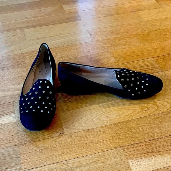 Super comfy gold studded black flats. The gold studs make such a statement. Barely used. In excellent condition.