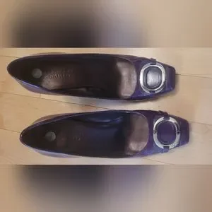 Patent leather purple shoes. Excellent condition. Worn only a couple of times. silver tone accent, approx. 3.5" heel height