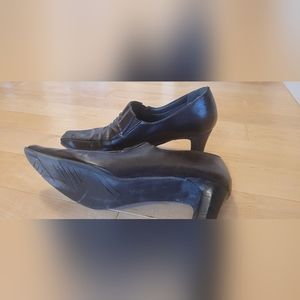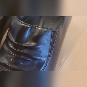 Slip-on short brown booties, shirred leather, approx 2 1/2" heel height, size 40 (9.5 US)