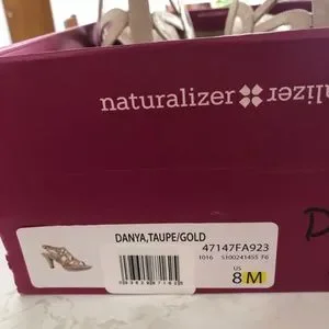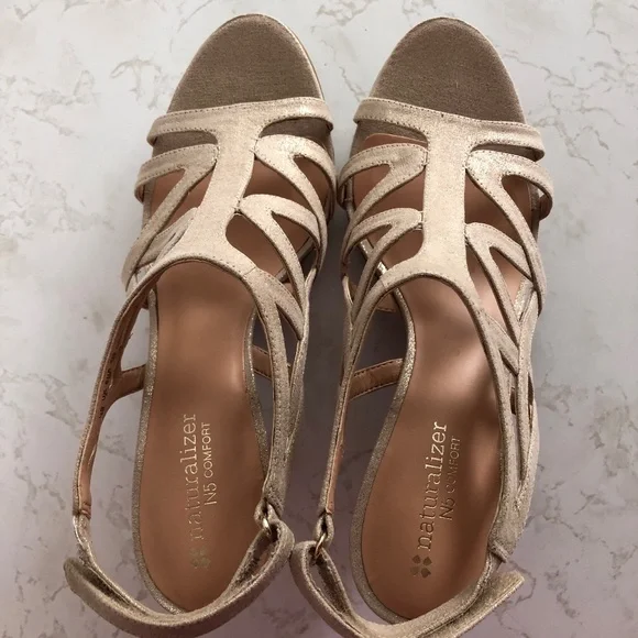 Naturalizers US Size 8 sandals. 3 inch heels. Worn once. Taupe / Gold
