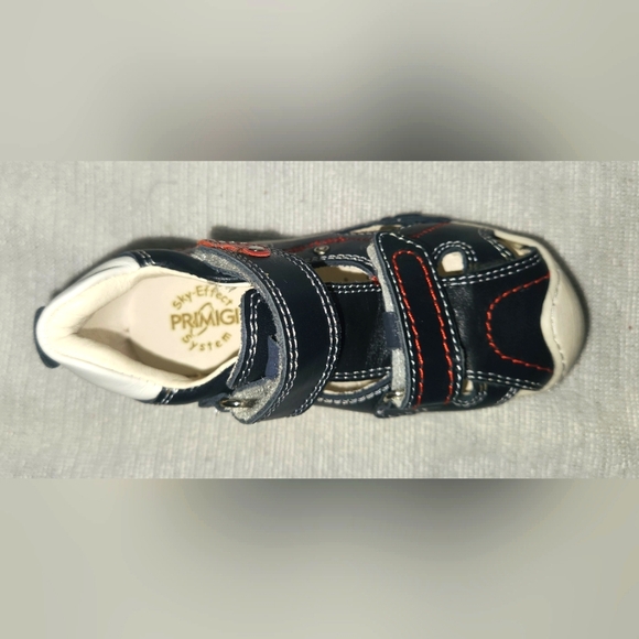 Almost new kids sandals blue with red stitching.