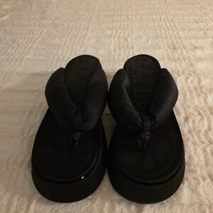 GANNI platform sandals, black padded slides, GANNI size 10 shoes, women’s chunky sandals, fashion platform flip-flops, luxury streetwear footwear, designer casual sandals, GANNI thong slides