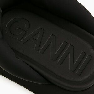 Stay effortlessly stylish with these GANNI black padded platform sandals. Combining bold design with comfort, these fashion-forward sandals feature a chunky sole, cushioned straps, and the signature GANNI logo — perfect for casual wear or elevated street style looks.