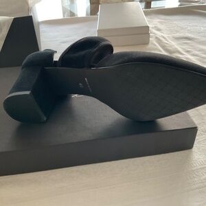‘Black Grosgrain Fabric front/toe. Black suede HEEL