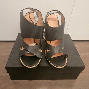 Elevate your style with these stunning designer heels from L.A.M.B. Featuring a chic two-tone design with soft blue straps and a sleek black base, these shoes are the perfect mix of modern edge and timeless sophistication.
