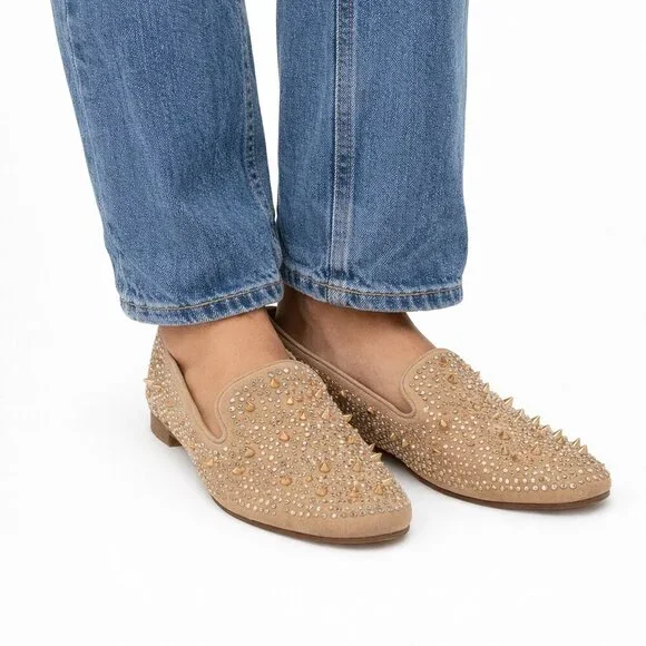 β¨ Style: Rhinestone & Spike Slip-On Loafers