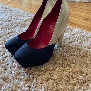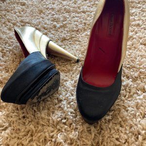 Black and Gold vintage 4 inch Cesare Paciotti Pumps,.