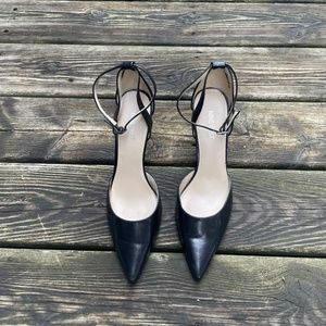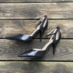 Nine West Black Pointy Toe Heels With Ankle Strap