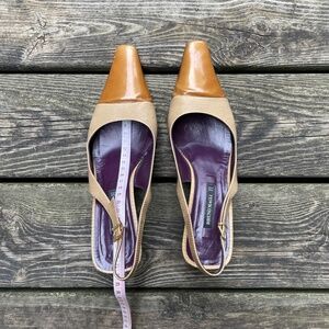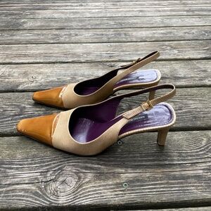 Shoes: Vintage Colour Block Caramel Slingback Heels