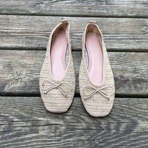 Shoes: Women's Straw Rattan Beige Bow Square Toe Ballet Flats