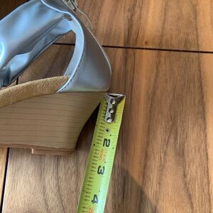 Pretty wedge Patrizia sandal in vegan leather and suede. Soft matte metallic silver finish adorned with dimensional flower detail, flowers in differing pastel shades to wear with everything. Rear zipper entry. European size 39 translates to Canadian 8, medium width. New, never worn, sticker still on. Very comfortable and very feminine shoes for weddings, date night, or your favourite jeans and T. Fabulous with resort and beach wear. Add a few finishing touches in matt silver from Our Closet (some suggestions shown all listed and priced separately), make a bundle to save a bundle. Get ready for summer with Lemon Squeezy Shop🍋