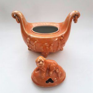 Shofu Japan VTG Incense Burner Jar 1930s Orange Lusterware Art Deco Rare