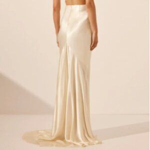 High waisted maxi skirt in cream in a LENZING™ ECOVERO™ with luxurious satin finish.