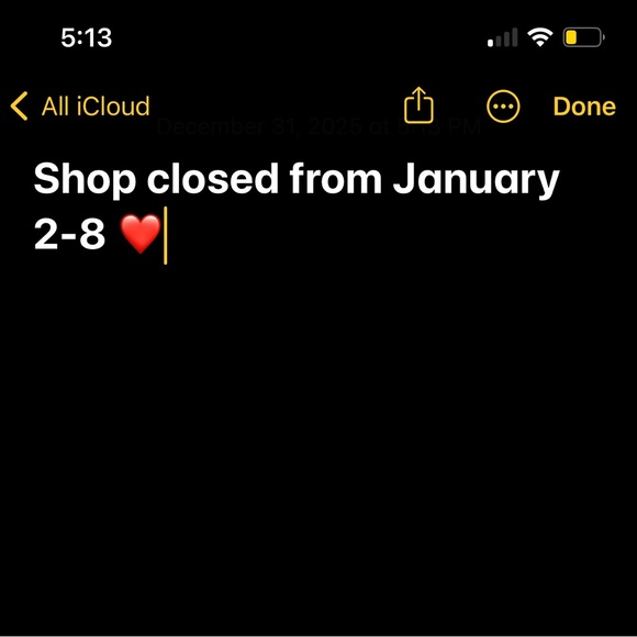 Digital note with text 'Shop closed from January 2-8 ❤️'.