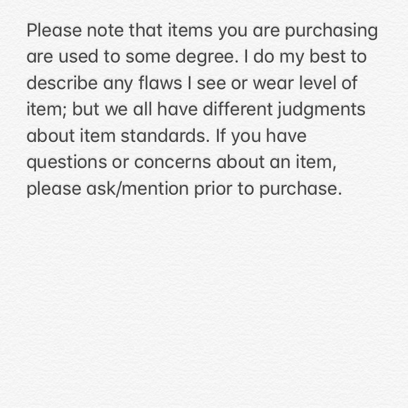 I sell on Poshmark very casually and am not a “professional” posher. I want to make this as straightforward and enjoyable for everyone involved. Communication is key. While I’d love for all users to enjoy my shop and items, we all have different tastes and expectations and “we” can’t make everyone happy. This shop isn’t for everyone, but if it fits your style I hope you enjoy it. I’m a top rated seller and quickly work to adjust to improvements buyers recommend to me.