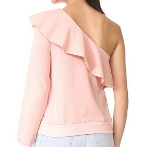 This casual re:named one-shoulder sweatshirt is styled with a ruffled overlay at the neckline. Ribbed edges and long sleeve.