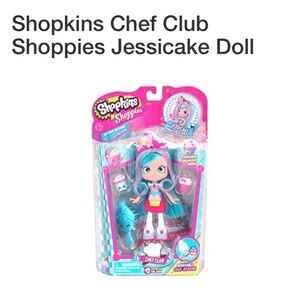 With Shoppie doll Chefs Club Jessicake (hair has been brushed but has frizzy texture on ends)