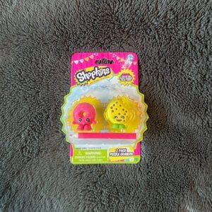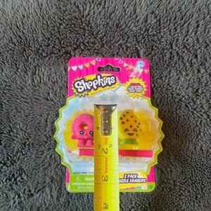 Shopkins collectible erasers brand new in sealed package. Includes mini pencil and 2-pack puzzle erasers - D'Lish Donut and Kooky Cookie. These were manufactured in 2015. Shopkins are not recommended for ages under 3. Colour depends on device/screen settings and lighting in pictures. All measurements are approximate and may slightly vary. All items are from my smoke free home.