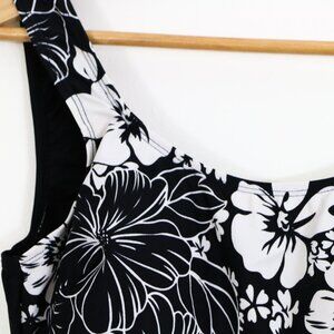 *Shore Shapes Black and White Tropical Floral Print One Piece Bathing Suit