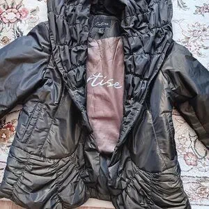 Just to the waist. Perfect with Jeans, colour is sort of bronzy.