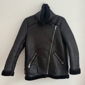 Perfectly worn in Zara Short Oversized Faux Leather Moto Coat, soft and warm interior with silver zipper detailing. Great for layering, Fall, start of Winter.