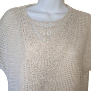 -- Short Sleeve Beige Knit Top Size Large