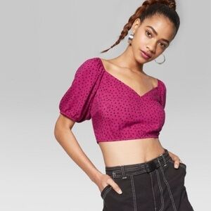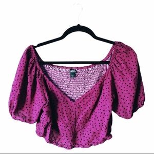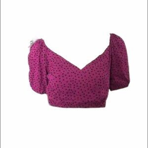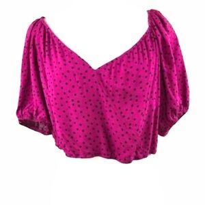 Short Sleeve Puff Sleeve V-Neck Cropped Polka dot