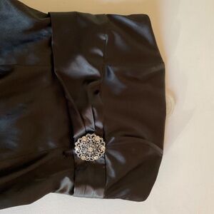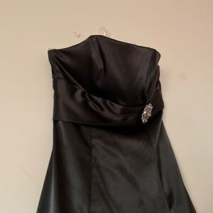 B. Smart black short strapless satin party dress with decorative diamond pin. Back zipper easy to put on. Cute party dress for Christmas, new year, wedding or any parties. Size 3/4.